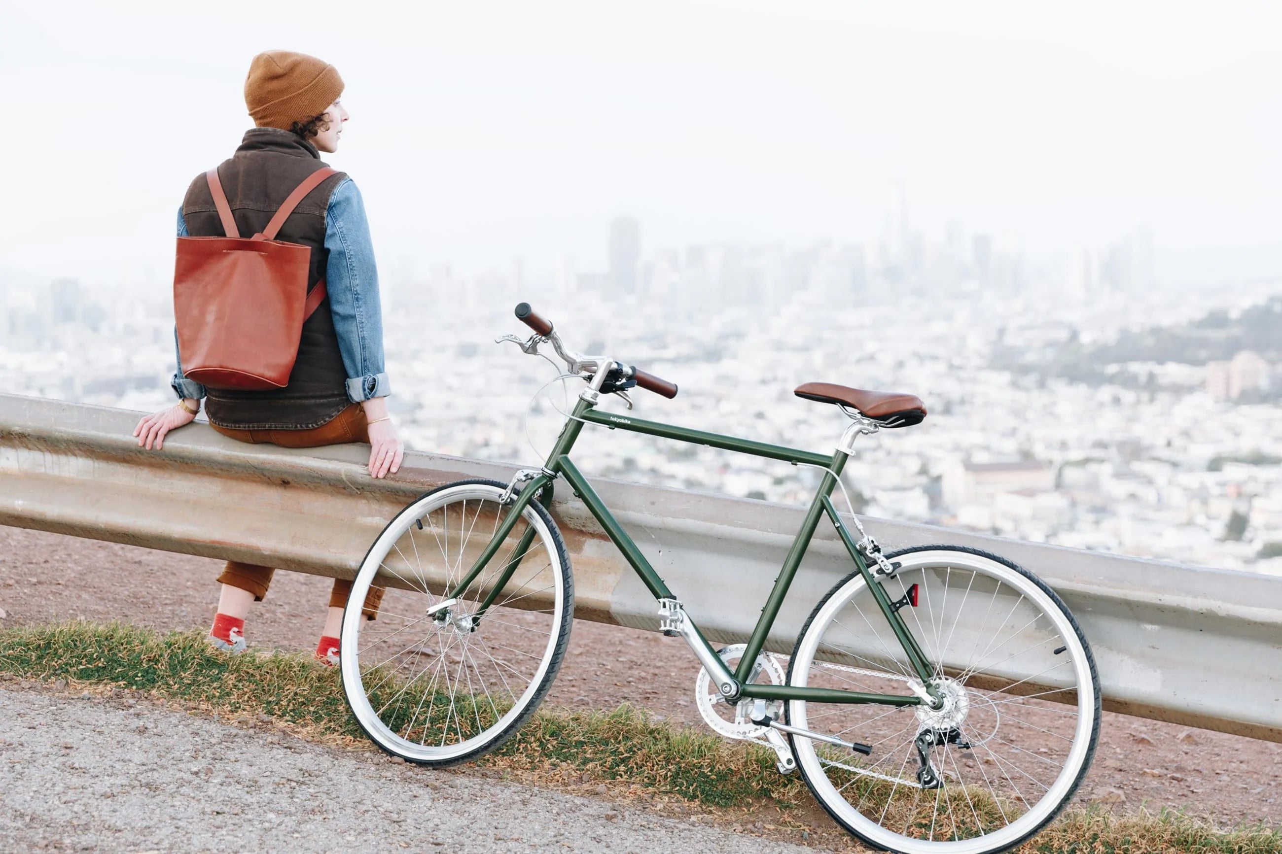 Bereifung Details: Klassischer, geschwungener Lenker mit braunen Griffen und Sattel